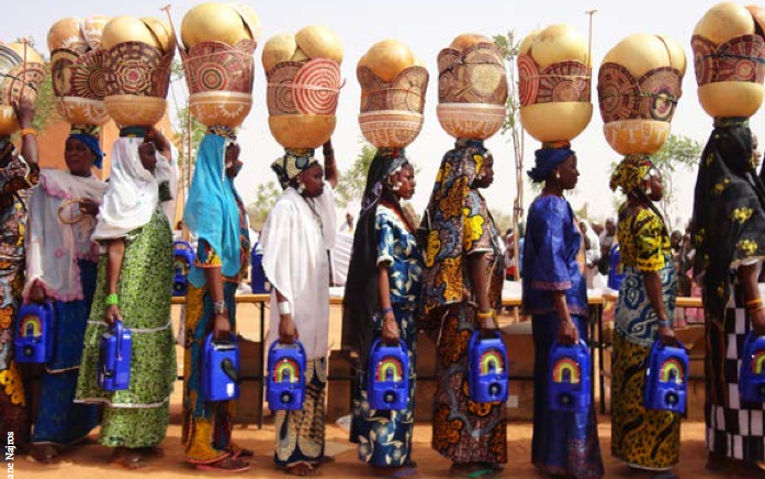 According to this factsheet, the Dimitra Clubs’ approach involves the following formula: “the determination of community members to mobilize, a wind-up solar-powered radio - sometimes paired with a mobile phone, close collaboration with community radio stations, support from FAO, some flexibility and ... the process can start!” As part of the process, rural radio stations are used as an information media relay to increase the communication flow, provide access to knowledge, and raise awareness on themes that have been identified and requested by the clubs themselves (agricultural practices, food security, gender-based unequal workload, access to water, land, sanitation, health, etc.). The clubs' members interact within their own club or with other clubs by using solar-powered and wind-up radio sets.