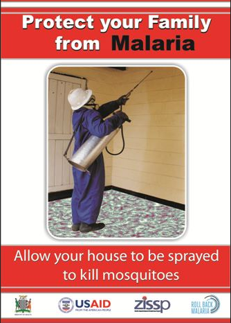 These four communication materials were produced to promote the acceptance of indoor residual spraying (IRS) in Zambia. Abt Associates, in partnership with the Zambia Ministry of Health, the United States Agency for International Development's Zambia Integrated Systems Strengthening (ZISSP) programme, and Roll Back Malaria produced the materials, which include a two-page brochure, poster, flyer, and sticker. The materials encourage households to allow spray-operators to spray their homes, explaining why spraying is needed, safety tips, procedures for preparing the home for spraying, and what to expect after spraying.