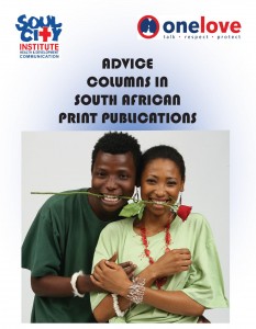 This is a report of a study initiated by Soul City Institute for Health and Development Communication as part of the OneLove campaign - a regional campaign that encourages a rethink of the common practice of multiple concurrent partnerships (MCP) and the issues that drive this practice. The study surveyed advice columns in 13 mainstream South African publications over a three-month period and found that while about 60% of letters to columns asked for advice about relationships, less than half received answers that included anything related to HIV risk, prevention, or treatment. Instead, advice columnists chose to focus on the emotional or "moral" issues of, for instance, multiple concurrent partnerships. The report recommends that columnists should talk more about HIV-risk behaviours, avoid moralising, and provide readers with additional resources for further information. The report also recommends that editors set guidelines on what "good advice" should or should not include.