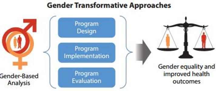 This Health Communication Capacity (HC3) Research Primer summarises GTA in the context of health and social and behaviour change communication (SBCC) so as to "address multi-leveled power hierarchies in communities that impede an individual’s ability to make decisions about his/her health...", for example, women's access to health services, condom use, partner reduction, and birth spacing. GTA create an enabling environment for gender transformation through the integration of gender issues into all aspects of programme and policy conceptualisation, development, implementation, and evaluation; thus, they include benefits for men, for example, encouraging HIV-related service use among men and increasing men’s contraceptive use. "These approaches strive to shift gendered community perspectives and social relationships towards perspectives of equality that allow both women and men to achieve their full potential within a society."