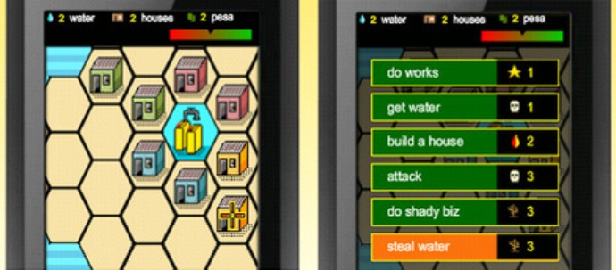 "A serious game which simulates the complexity of life in the slums, the scarcity of resources, how to deal with them and prevent escalation of conflict."