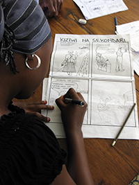 Shivyawata arranged four grassroots comics workshops in Mwanza for the local branches of Tanzania Association of the Deaf, Tanzania Albino Society, Tanzania Association of the Physically Handicapped, and Tanzania Association of Mentally Handicapped. Fifty-one participants attended the workshops. According to the organisers, most of the participants were disabled, although in the case of the Association of Mentally Handicapped, mainly family members participated.
