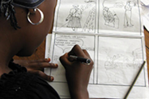 Each five-day workshop covered the basics of drawing, in particular drawing people, facial expressions, perspective, and landscapes. Participants then learned to construct a story with a theme, focus, and message, and to consider their audience (readers). Finally, the stories were made into comics. On the last day participants learned how to organise their own workshops.