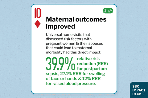 "Home visits reduced upstream maternal risks, improving maternal outcomes without increased use of health services. This could have implications in other settings with poor access to quality antenatal and delivery care services."