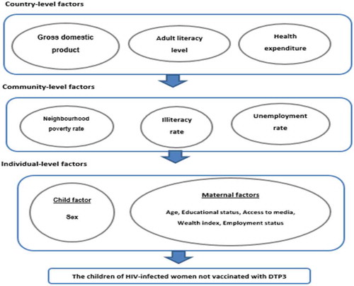 Several individual-, community-, and country-level factors influence the association between maternal HIV status and childhood vaccination coverage in sub-Saharan Africa. For example, studies have found that children born to HIV-infected mothers are less likely to get all basic vaccinations according to schedule due to mothers' avoidance of community health facilities owing to stigma and discrimination. The aim of the present study was to develop and test models for non-uptake of 3 doses of diphtheria-tetanus-pertussis containing vaccines (DTP3) among children of women living with HIV in sub-Saharan Africa.