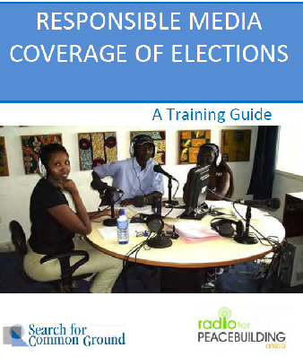 According to Radio for Peace Building Africa, this guide is based on the activities that Search for Common Ground (SFCG) has conducted in Burundi and Guinea, with the support of the National Democratic Institute, Radio France International, the United States Agency for International Development, Swiss Cooperation, and the European Union. The guide includes details about media synergy strategies in which journalists from different media organisations of a country collaborate and network with each other at different stages in the electoral process to ensure responsible and effective coverage of the elections. Media synergy strategies were used in the 2005 and 2010 elections in Burundi and the 2010 election in Guinea.