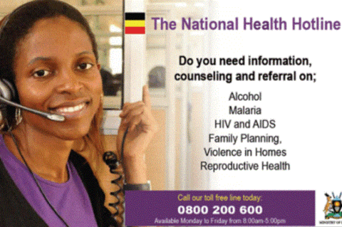 The Ugandan National Health Hotline, launched in 2009 by the Communication for Development Foundation Uganda (CDFU), was established to improve access to information and counselling about issues such as alcohol abuse and gender-based violence. The hotline is a specialised telephone service that listens to and counsels callers, disseminates information, and refers callers to services and resources for further help. Over the years, the Health Hotline has expanded to provide a reliable, anonymous, and non-judgmental service for callers seeking information, counselling, and referrals concerning HIV, family planning, reproductive health, malaria, and safe male circumcision, as well as gender-based violence, and alcohol abuse. The hotline was formed in collaboration with the United States Agency for International Development and the Health Communication Partnership.