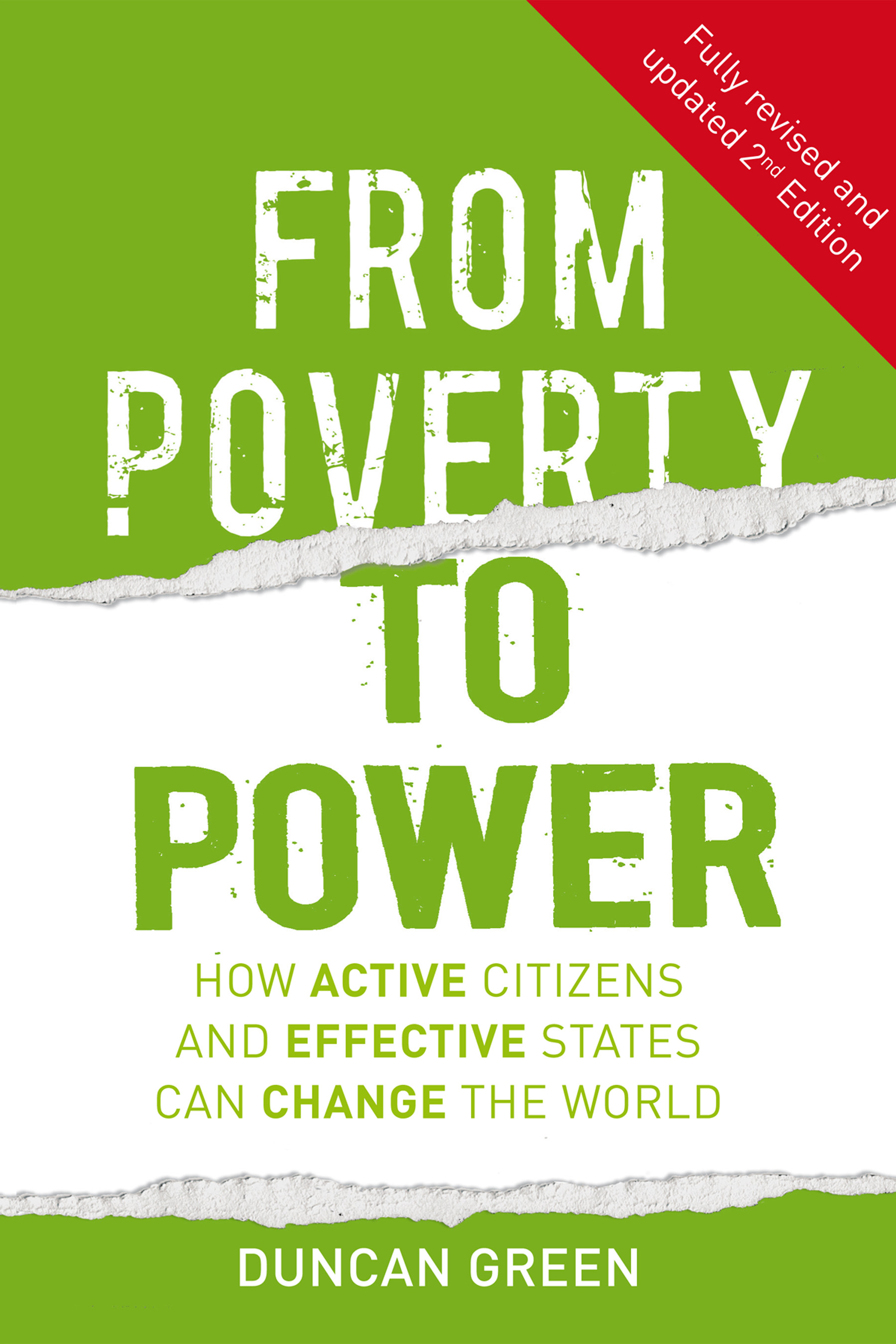 The second edition of the book reflects the "[s]eismic events [that] have convulsed global markets since 2008". Having been fully revised, it includes an in-depth analysis of the human impact of the global financial and food crises, arguing that a radical redistribution of power, opportunities, and assets, rather than traditional models of charitable or government aid, is required to break the cycle of poverty and inequality. As author Duncan Green had articulated in the first edition, active citizens and effective states are driving this transformation. Why active citizens?, he asks. He suggests that people living in poverty must have a voice in deciding their own destiny and holding the state and the private sector to account. With regard to the role of effective states, Green points to the fact that history shows that no country has prospered without a state structure that can actively manage the development process. He stresses that there is now an added urgency: climate change. We need to build a secure, fair, and sustainable world within the limits set by scarce resources and ecological realities.