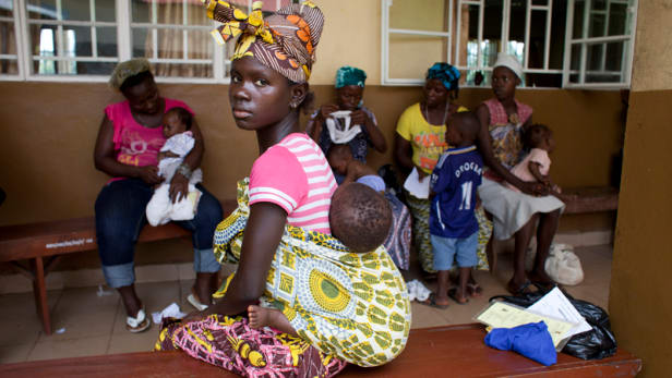 Bulletin of the World Health Organization 2016;94:376-382. doi: http://dx.doi.org/10.2471/BLT.15.168492. Image caption/credit: "A young mother waits at the Makeni Regional Hospital in Sierra Leone. Maternal and child death rates have fallen in every one of the 49 countries targeted by the Global Strategy for Women's and Children's Health, which was launched by U.N. Secretary-General Ban Ki-moon in 2010. Photo by: Abbie Trayler-Smith / H4+ Partnership / CC BY-NC-ND"