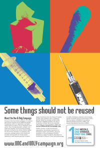 Led by the Centers for Disease Control and Prevention (CDC) and the Safe Injection Practices Coalition (SIPC), this public health campaign is designed to raise awareness among United States' patients and healthcare providers about safe injection practices and to eradicate outbreaks resulting from unsafe practices. The campaign title comes from the slogan "One Needle, One Syringe, Only One Time."