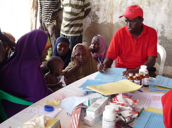 Health Policy and Planning, 38, 2023, 1198-1224. DOI: https://doi.org/10.1093/heapol/czad082. Image caption/credit:  A woman and her child are reigstered at a UNICEF-supported health centre in Mogadishu, Somalia. In addition to treatment for malnutrition and measles, United Kingdom (UK) aid will help UNICEF to provide 300,000 polio vaccines, vitamin A and deworming treatment to vulnerable children. UNICEF/Iman Morooka via Flickr (CC BY-NC-ND 2.0)